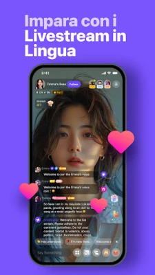 Pratica le lingue con madrelingua su HelloTalk, la piattaforma dove connettersi è facile. Esplora HelloTalk Live e la Stanza Vocale per eventi interattivi di lingua e cultura. Padroneggia nuove lingue attraverso contenuti che ami, in un ambiente autentico e coinvolgente.
