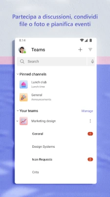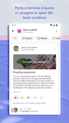 Microsoft Teams unisce chat, riunioni, file, attività e calendario in un'unica app. Ideale per la collaborazione in team su progetti o per pianificare eventi con amici e familiari. Semplifica la connessione e la gestione delle tue attività quotidiane, con strumenti sicuri e storage cloud integrato.