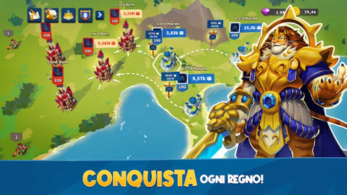 Entra nell'epico universo di Million Lords, dove la tua astuzia e la tua sete di conquista plasmeranno il destino di regni interi. Questo non è solo un gioco; è un campo di battaglia strategico multigiocatore online (MMO), una sfida continua dove l'abilità tattica e la diplomazia sono le tue armi più affilate. Rivesti i panni di un potente Lord in un suggestivo mondo medievale fantasy, pronto a edificare il tuo impero e a unificare le leggendarie Tre Terre sotto il tuo dominio.