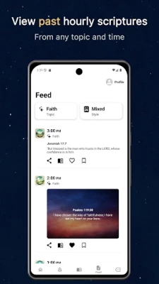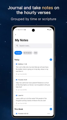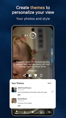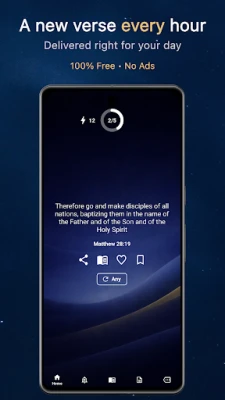 Con Ora Biblica, la tua esperienza spirituale è profondamente personale. Puoi modellare il tuo percorso scegliendo tra argomenti specifici come Fede, Guarigione, Pace o Amore, oppure lasciarti sorprendere da una selezione casuale dall'intera Bibbia. Ancora più unico, hai la libertà di impostare un versetto a tua scelta per qualsiasi ora, rendendo ogni notifica un messaggio su misura. L'estetica si fonde con la spiritualità, permettendoti di personalizzare l'interfaccia con le tue immagini, creando un ambiente visivo che risuona con la tua anima. Non solo, potrai custodire i passaggi più significativi, organizzandoli in collezioni tematiche come Saggezza o Perdono, e rivedere facilmente i versetti precedenti per un continuo nutrimento.