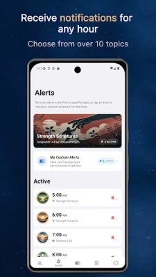 Rimani connesso spiritualmente ogni ora con Ora Biblica: Avvisi Versetti. Ricevi un nuovo versetto biblico ogni ora per ispirazione, forza o pace. Personalizza gli avvisi per concentrarti sui temi che ti servono, mantenendoti radicato nella Parola di Dio durante la giornata.