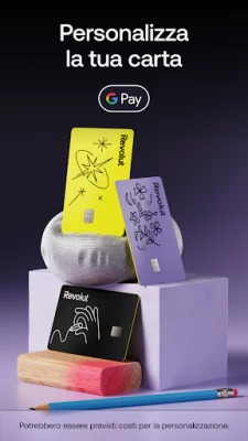 Scopri un nuovo modo per i più giovani di interagire con il denaro. Revolut offre una piattaforma innovativa e sicura, pensata per aiutare ragazzi e ragazze a imparare a gestire le proprie finanze in autonomia, ma sempre sotto l'occhio attento dei genitori. Con Revolut, la gestione del denaro diventa un'esperienza educativa e personalizzabile, fin dalla scelta di una carta di debito fisica o virtuale, unica nel suo genere grazie a opzioni di personalizzazione con scritte, disegni o adesivi che la rendono davvero tua (potrebbero applicarsi costi per la personalizzazione). Integra facilmente le tue carte con Apple Pay o Google Pay per pagamenti rapidi e moderni, rendendo l'uso del denaro pratico e divertente.